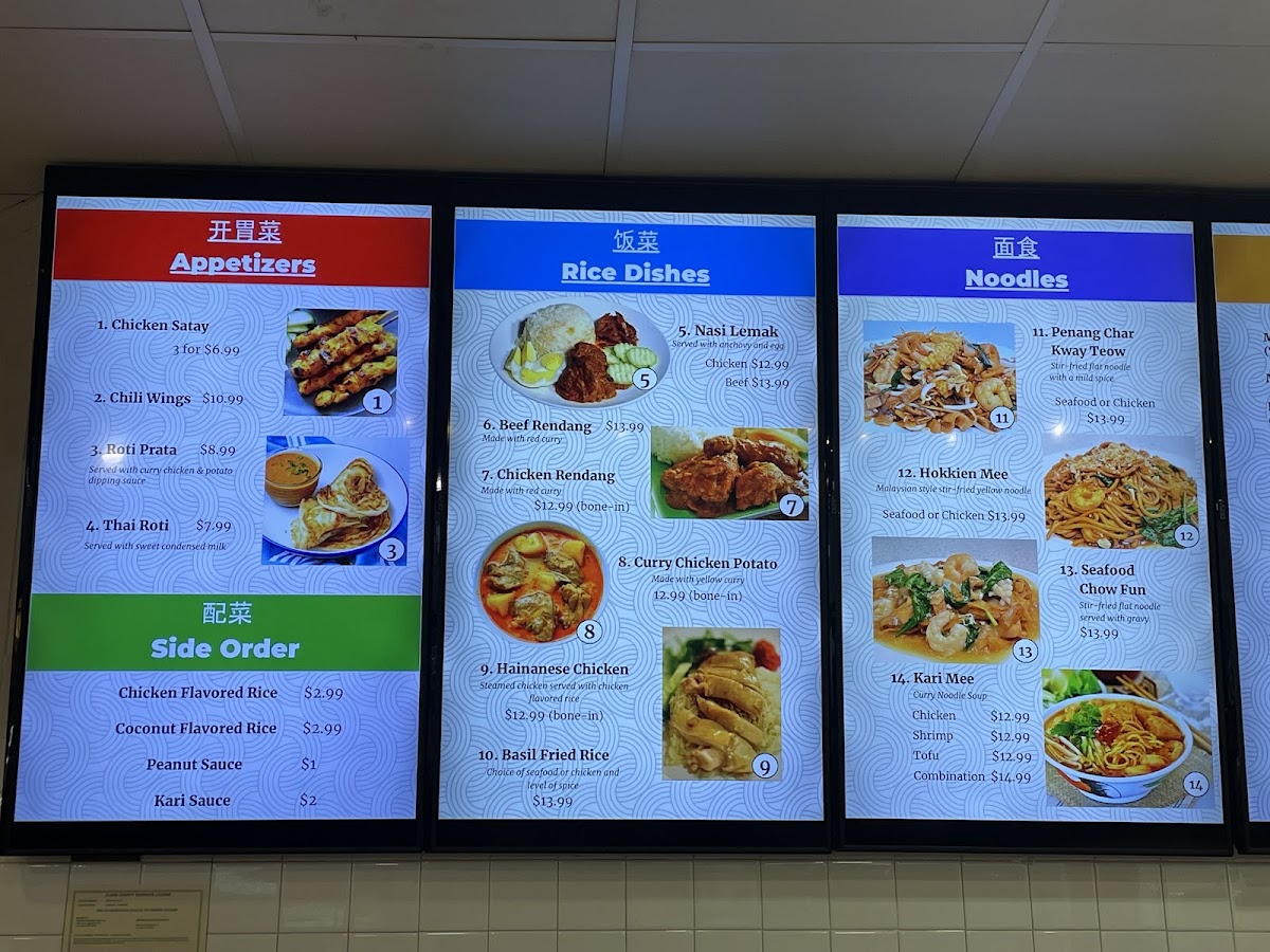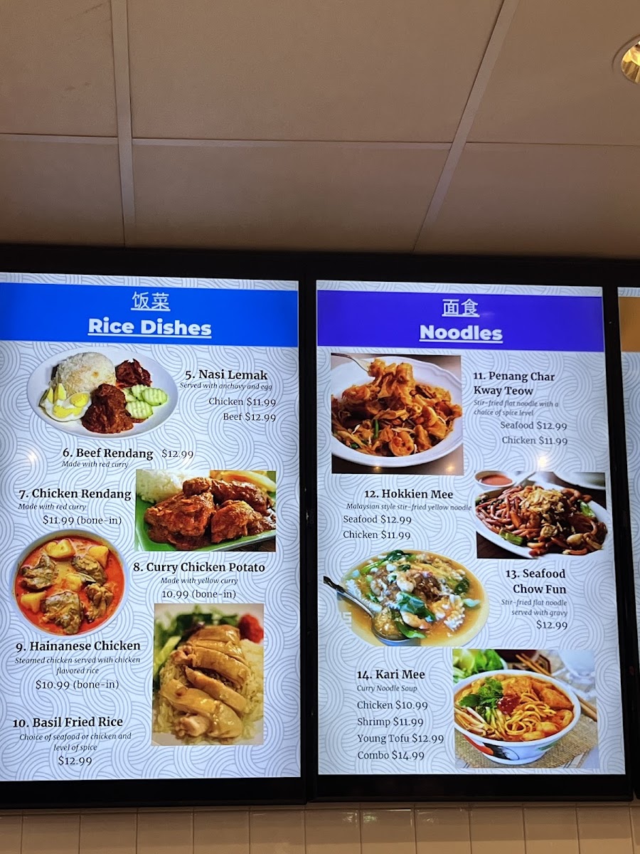 As a final impression of the menu at Penang Hawker Food on South Las Vegas Boulevard, I find it to be a well-curated snapshot of Malaysian street food that balances comfort, variety, and authenticity. The appetizer selection sets the tone nicely, with Curry Puff (2pc) offering a warm, flaky bite, while Chicken Satay (3pc) paired with rich peanut sauce delivers classic smoky flavors. Roti Canai (2pc) and Thai Roti (2pc) stand out as satisfying starters, especially when enjoyed with a side of Kari Sauce, and the crispy Spring Rolls (2pc) add a familiar crunch. Moving into the heart of the menu, the noodle dishes such as Penang Char Kway Teow, Hokkien Mee, Chow Fun With Egg Gravy, Penang Char Mee, and Kari Laksa Mee showcase the kitchen’s strength in bold wok-fried aromas and layered spice profiles. For rice lovers, staples like Nasi Lemak feel essential, while Street Fried Rice and Basil Fried Rice offer comforting, savory options. Heartier mains such as Hainanese Chicken and Chicken Rendang round out the menu with depth and tradition, making the rice section particularly satisfying. Complementing the food, beverages like Malaysian Style Milk Tea, Malaysian Style Coffee, Pure Leaf (Unsweet Ice Tea), RedBull Lychee, and Lychee provide refreshing or energizing finishes to the meal. Overall, the menu feels cohesive and thoughtfully assembled, making it easy to explore multiple Malaysian favorites in one visit while still leaving a strong, memorable final impression.